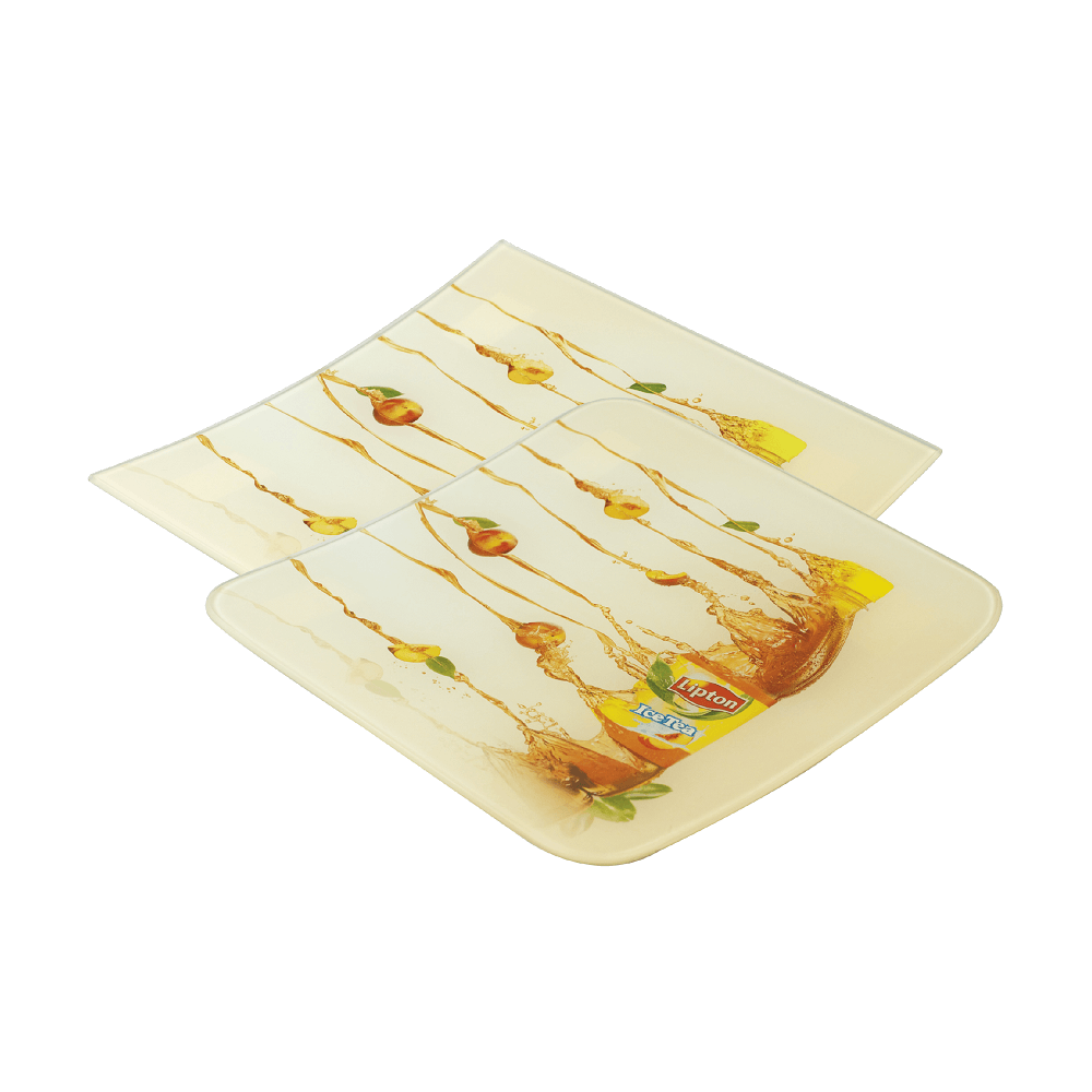 GLC Sticker 150x150 - kompaktowa kwadratowa szklana bilonownica. Modele z serii GLC wykonane są z odpornego szkła giętego. Na odwrotnej stronie bilonownicy przyklejona jest etykieta reklamowa, która jest dobrze zabezpieczona przed uszkodzeniami i zarysowaniami. Rogi podstawki mogą być zaokrąglone. Stabilność zapewniają 4 nóżki antypoślizgowe.