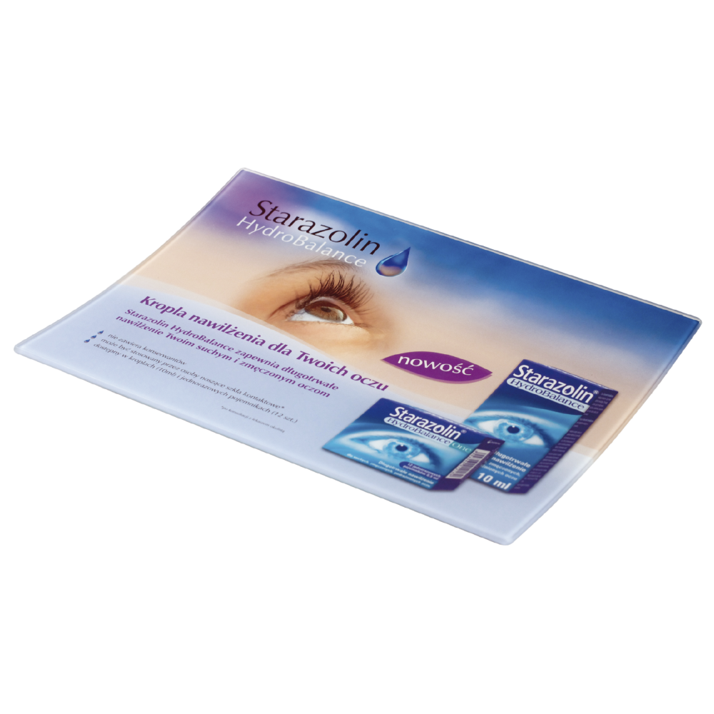 GLC Sticker 210x150 - Prostokątna szklana bilonownica. Modele z serii GLC wykonane są z odpornego szkła giętego. Na odwrotnej stronie bilonownicy przyklejona jest etykieta reklamowa, która jest dobrze zabezpieczona przed uszkodzeniami i zarysowaniami. Rogi podstawki mogą być zaokrąglone. Stabilność zapewniają 4 nóżki antypoślizgowe.