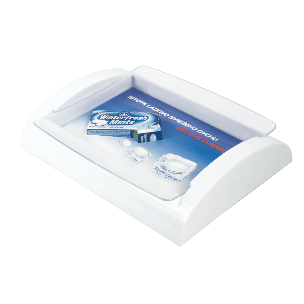 Elegancka bilonownica szklano-plastikowa kategorii EXPO z możliwością umieszczenia wewnątrz eksponowanych produktów reklamowych. Podstawka składa się z płytki szklanej oraz podstawy z tworzywa do umieszczenia wewnątrz artykułów trójwymiarowych promocyjnych wraz z etykietą zamkniętych w funkcjonalna całość. Wykonana jest z polistyrenu i szkła. Każda bilonownica posiada 4 nóżki antypoślizgowe. Etykieta reklamowa do tego modelu to wkładka poligraficzna (papier kreda 130-150 m/m2).